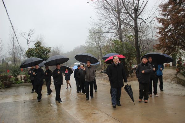 考察组实地参观了信阳新农村建设示范点郝堂村和部分红色旅游点等地,并召开座谈会,听取了信阳市扶贫开发工作情况的介绍。